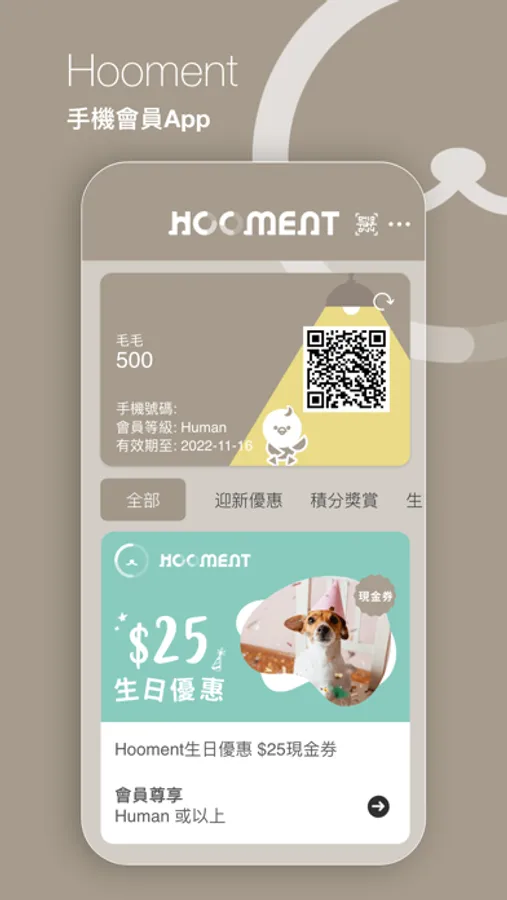 * 手機會員卡:下載手機程式並登記成為正式會員,即可隨時隨地查閱最新會員積分。