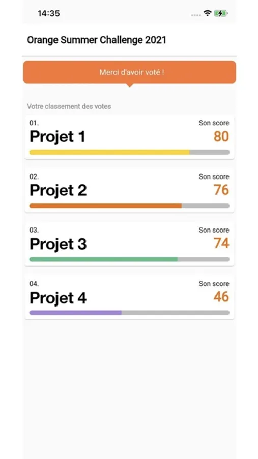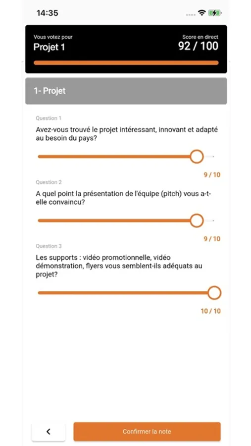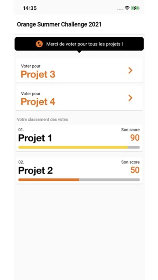 Application de vote pour choisir selon des critères d'évaluation, le projet le plus innovant.
