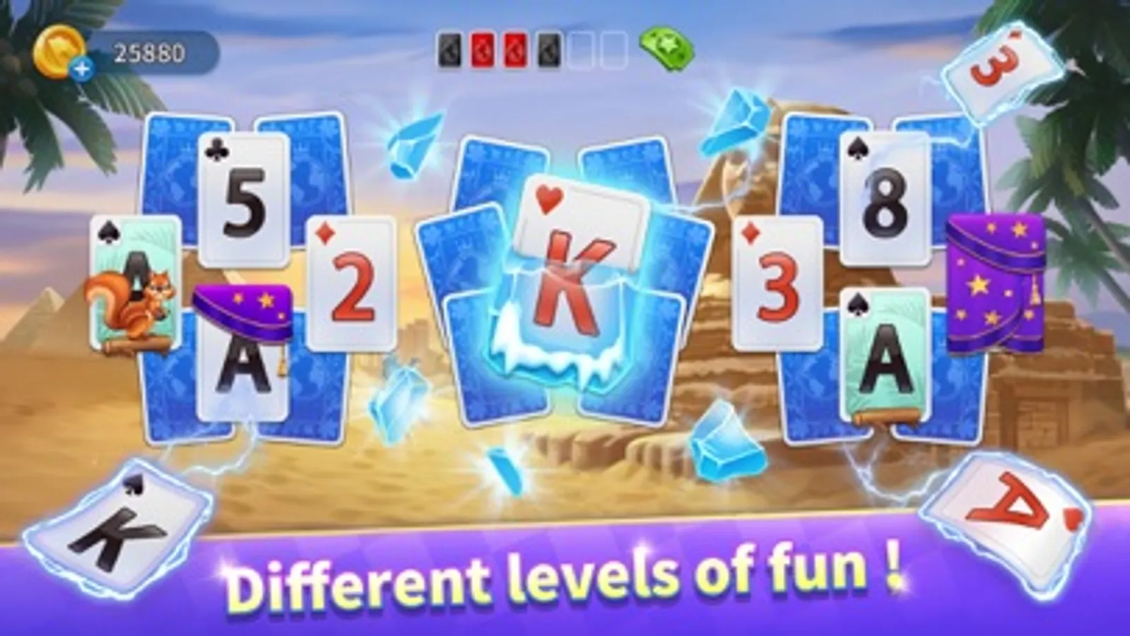 Stuck at home and tired of the vacation blues? Don't sweat it because this Solitaire TriPeaks adventure will cure all your symptoms! Dive in and discover the most beautiful gems in this solitaire world. Las Vegas, London, Tokyo, or Amazon, there's a place that'll satisfy your heart's desire, so pack your bags and start your Solitaire vacation now!