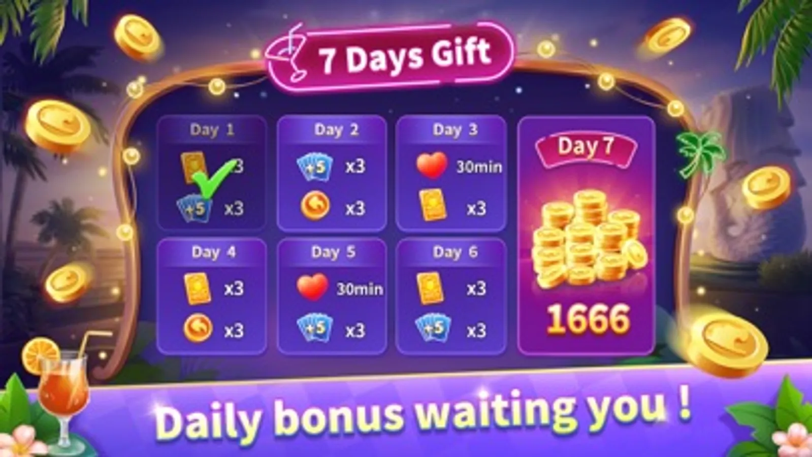 More than you can ever imagine! Get goodies from the Lucky Wheel, and bonus Treasures! Make your way through the Solitaire levels to discover more hidden gems and rewards!