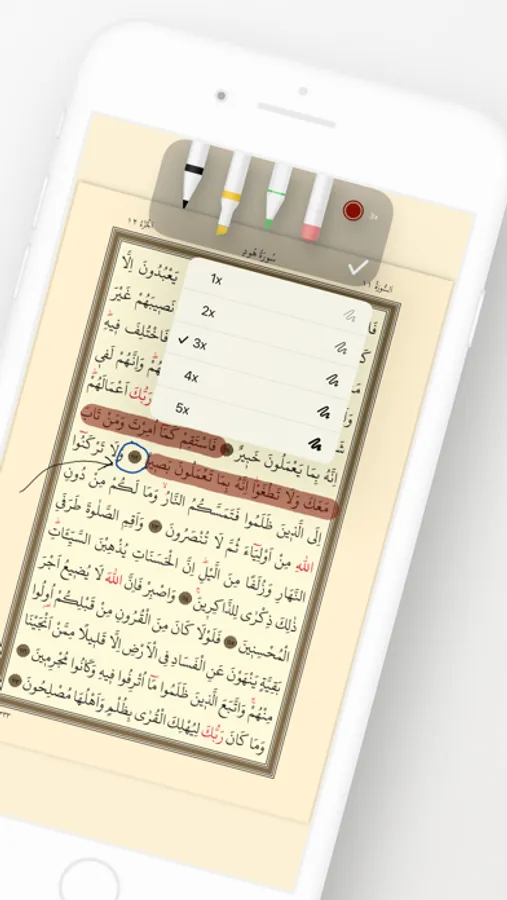 • You can take notes on Holy Quran (القران) and mark it with your pen. (iOS 14 and above)