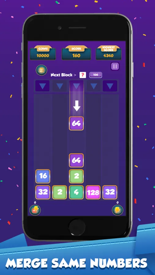 Tap, drop, and combine colorful drop numbers blocks of the same number to score high!