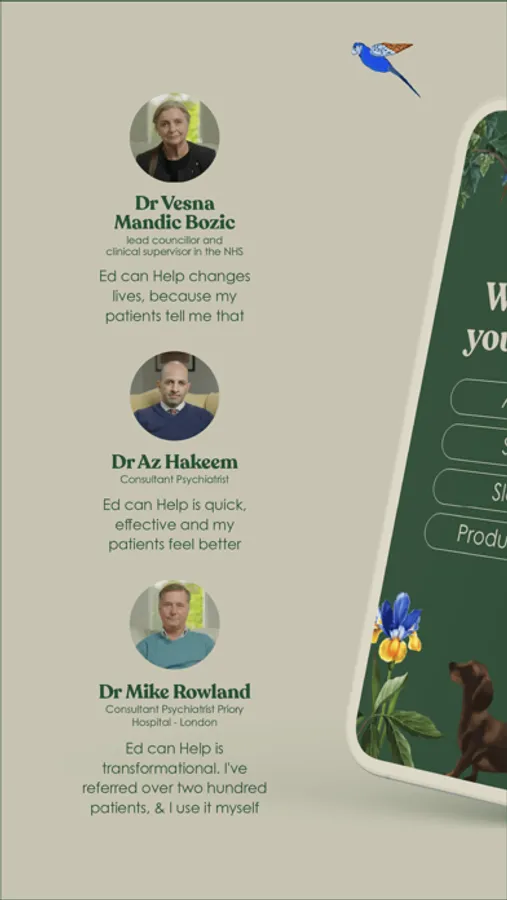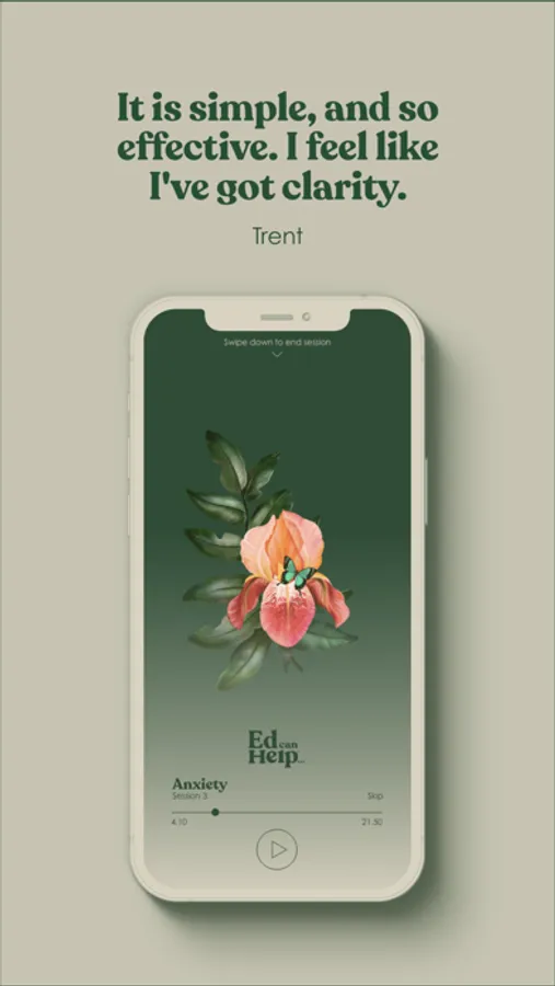 Ed can Help is your personal mental health companion, providing anxiety and stress relief whenever and wherever you need it. Our sessions last for 20 minutes, and we’re here to guide you every step of the way on the path to better mental health. Download today and sign up for better mental health.