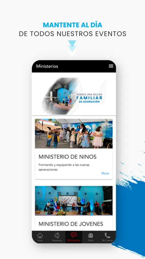 * Ver e interactuar con los eventos y ministerios.