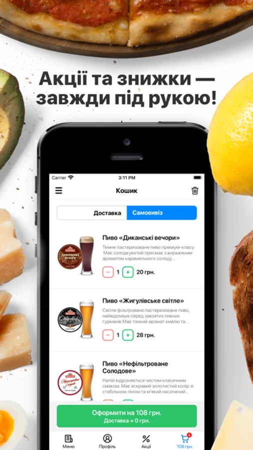 - Швидке замовлення з миттєвим підтвердженням через додаток.