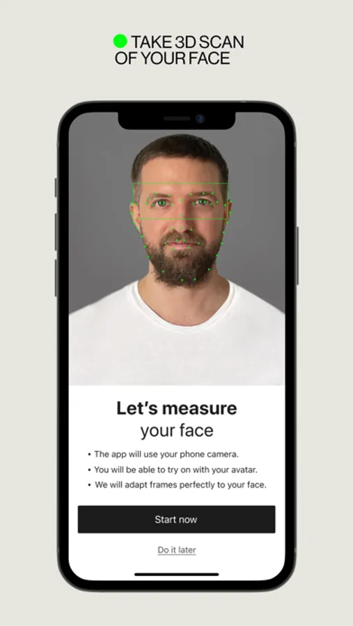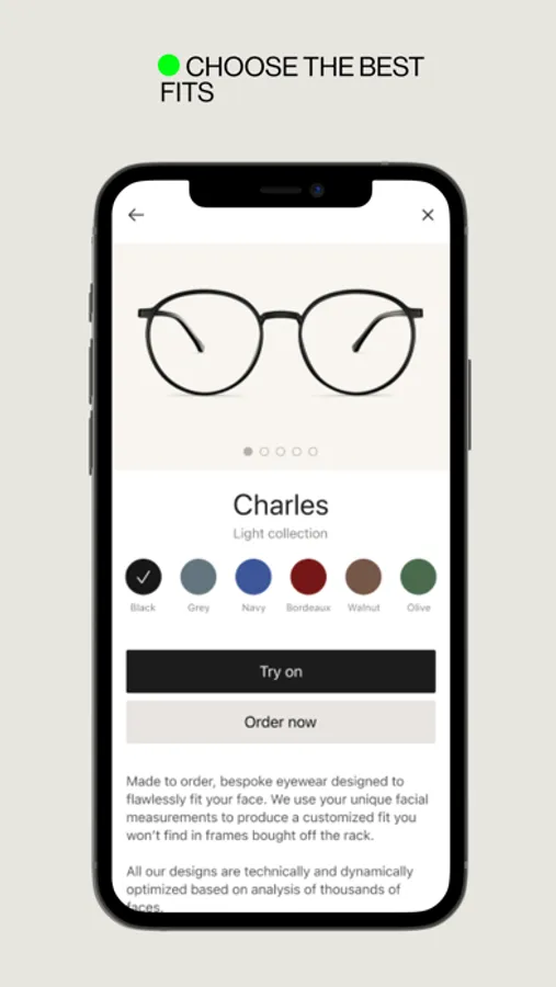 Our 3D-printing technology produces glasses that are 100% customised to a highly detailed scan of your face. To optimize our frames, we analysed the shape and structure of thousands of faces. But while the design of our frames is based on the data of many people, each pair of glasses is finished based on the data of just one. Our in-house developed algorithm automatically amends the frame to ensure an optimal fit without losing the characteristics of the original design.