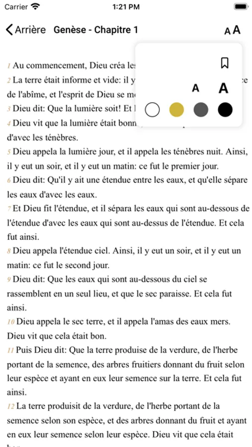 L'application est livrée par défaut en langue française. L'application propose la Sainte Bible (Texte) Entièrement gratuite. Très rapide et facile d'utilisation