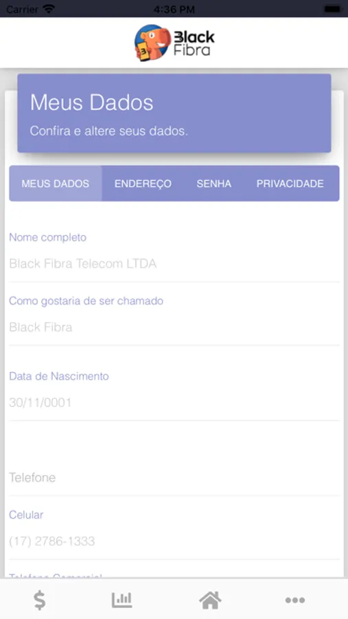 No App você consegue visualizar o status de pagamento das suas faturas, além de emitir o código de barras para pagá-las a qualquer momento. Você também pode gerar e compartilhar a 2ª via (PDF) da sua fatura.