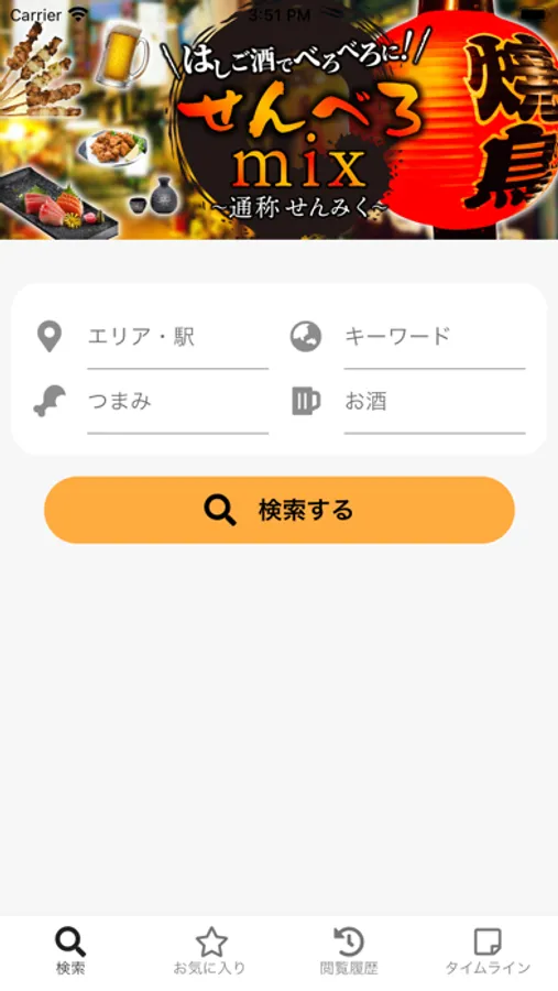 キーワード検索で場所だけではなく、お酒、おつまみでもお店をお探しいただけます。