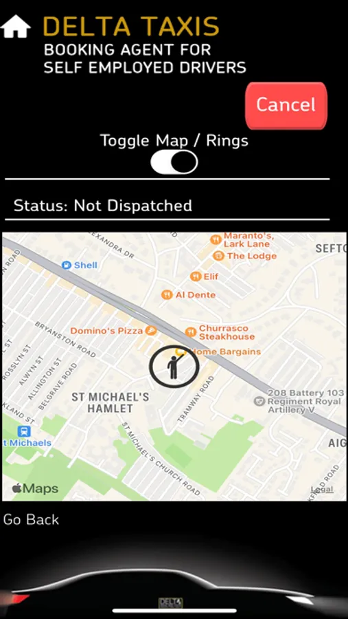 LIVE TRACKING – shows your assigned Delta Taxi homing in to collect you live on apple maps.