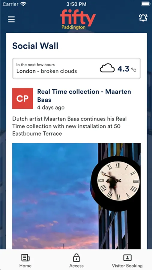 A smart workplace app for users of Fifty Paddington. The app allows you to access your workspace, invite guests, review facility usage, book the loading bay and submit support tickets.