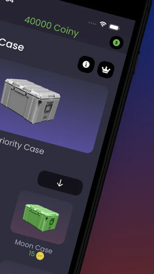 This screen lists the available cases on the application. Either show cases in a list or grid view by tapping the eye icon. By clicking any of these cases, you will directed to opening page. There are exactly 10 types of cases available on the app right now. These cases are divided in to 2 category. Paid and free cases. The application uses in game currency which is called balance, can be collected from selling skins. More cases will be included after in later updates.