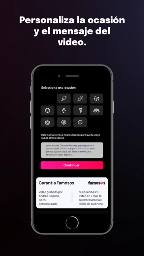 -Elije a tus Famosos favoritos, haz la solicitud del video que deseas y ellos se encargarán de ponerle voz, música o esa nota de humor que lo hará aún más especial.