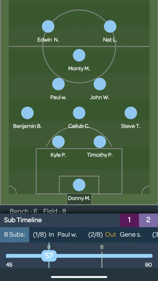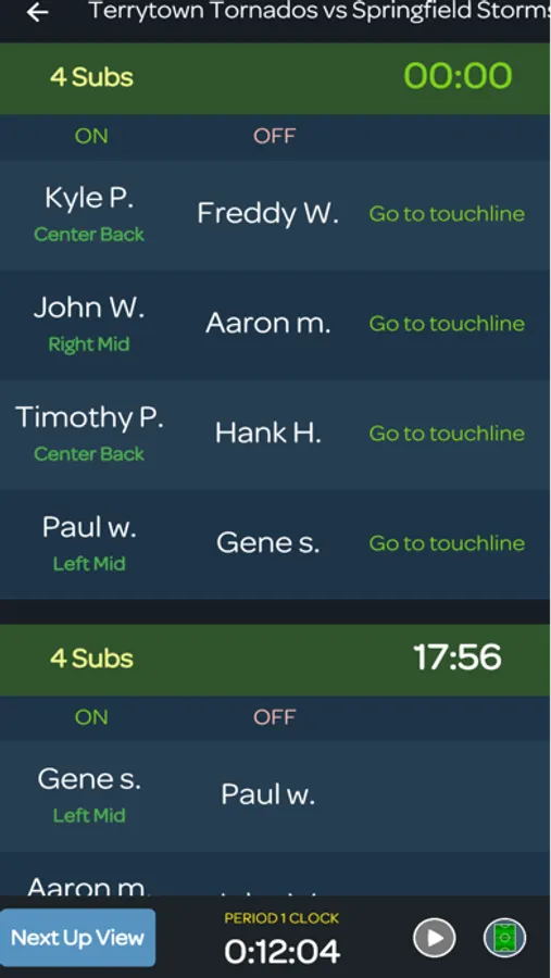 Select your player line up for the game, then just drag & drop your subs on the field and tap gametime to kick things off! SmartSubs takes care of the rest. Letting your players know when they should be warming up, when it's their turn to take the field, what position they're going to, and who they are subbing in for.