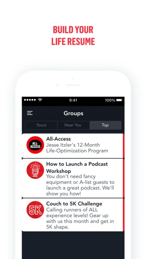 The Build Your Life Resume® (BYLR®) app is the home of Jesse Itzler’s community and coaching programs.