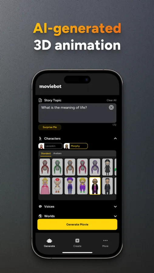 MovieBot makes it fun and easy to create hilarious 3D animation with AI.