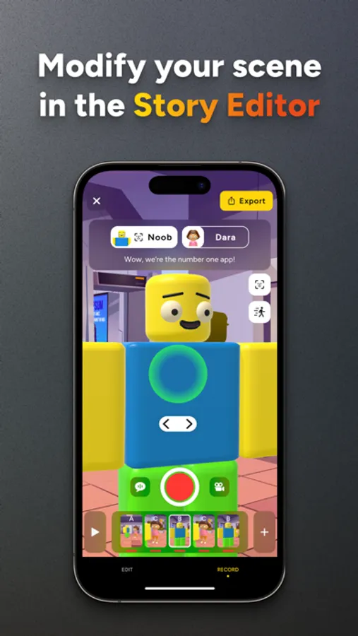 Every video is also a fully customizable 3D world. Modify your story, characters, environment, cameras, and more in the Story Editor. If you’re feeling jazzy, you can also record your own animation, voice, and face performance for your characters.
