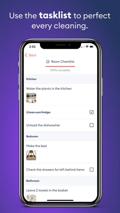 - Follow the task list created by the host to help guide you through and perfect every cleaning.