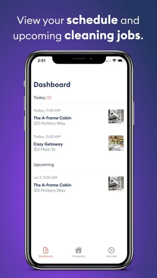 - View your schedule and any upcoming cleaning jobs that you have been assigned from a host.