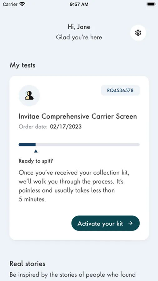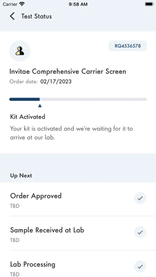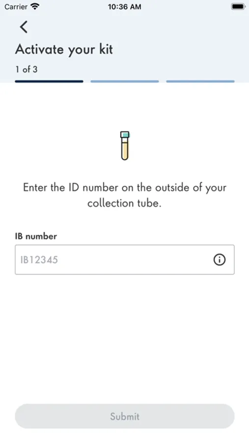 You can order tests from invitae.com, and once you receive a kit, you can use this app to log in to your account, activate your kit, and track the status of your sample.