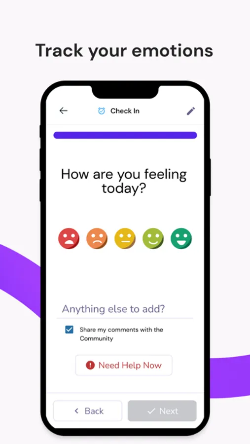 Cultivate emotional awareness through “Daily Check In” and share results with your selected support contacts.