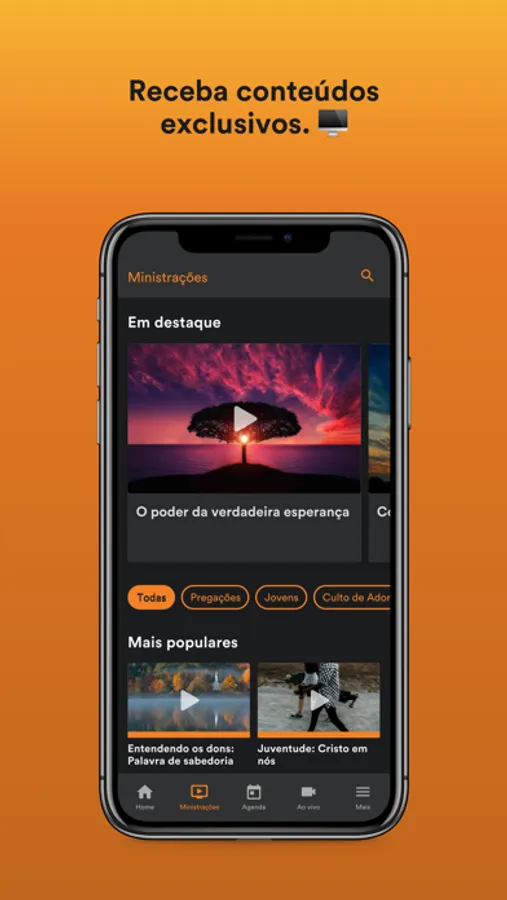 - Siga a agenda e fique por dentro de tudo que acontece na igreja, inscreva-se em eventos e tenha seus ingressos sempre com você.