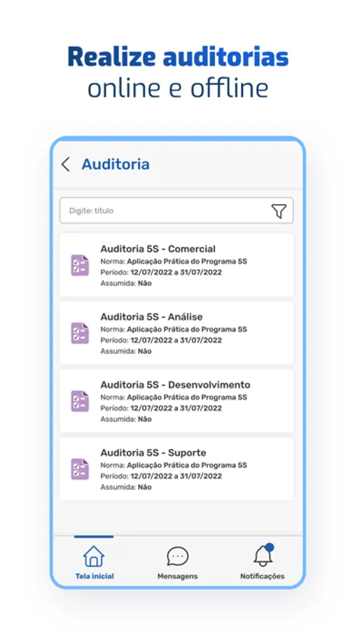 - Aplicar auditorias online e off-line do tipo classificação ou escala;