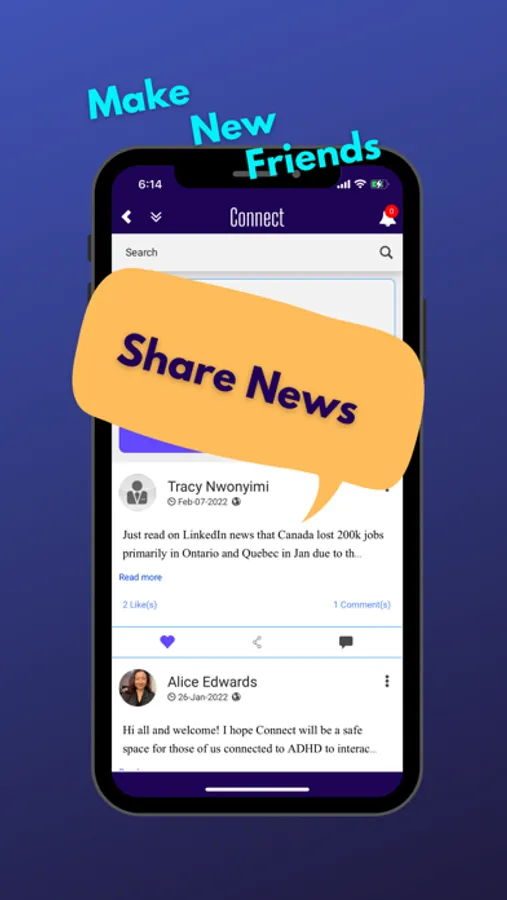 CONNECT: talk socially and make friends with others in the ADHD community - others with ADHD, as well as other parents, lovers, managers, or coworkers. Follow the people you connect with to easily stay in touch. See who is following you. Like peoples posts to encourage them to share more and begin building friendships. Share text, photos, and videos (PG & positive/friendly/supportive only!). You can decide if you want to be notified via email when someone follows you, comments on your posts, or likes your post, to help you connect with people who express interest in you and like what you have to say, even if they are in a different time zone and didn’t reply “live” while you were in the app.