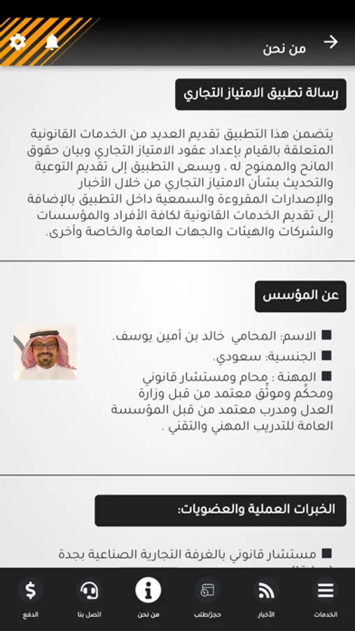 المانح والممنوح له ، ويسعى التطبيق إلى تقديم التوعية والتحديث بشأن الامتياز التجاري من خلال الأخبار والإصدارات المقروءة والسمعية داخل التطبيق بالإضافة إلى تقديم الخدمات القانونية لكافة الأفراد والمؤسسات والشركات والهيئات والجهات العامة والخاصة وأخرى.
