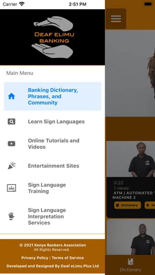 The Deaf eLimu Banking App is a Banking Kenyan Sign Language self-training tool developed by Kenya Bankers Association in Partnership with FSD-Kenya and Deaf eLimu Plus.