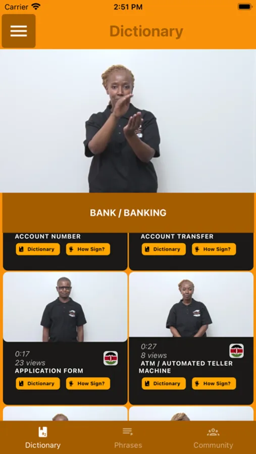 Banking vocabulary in Kenyan Sign Language (KSL).