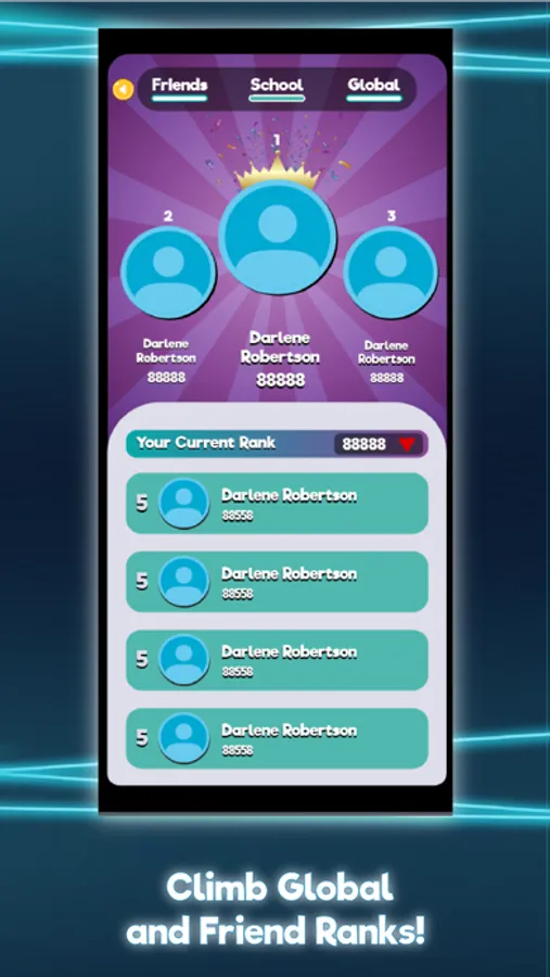 You or your children can view global, school, or friend lists in a detailed leaderboard!