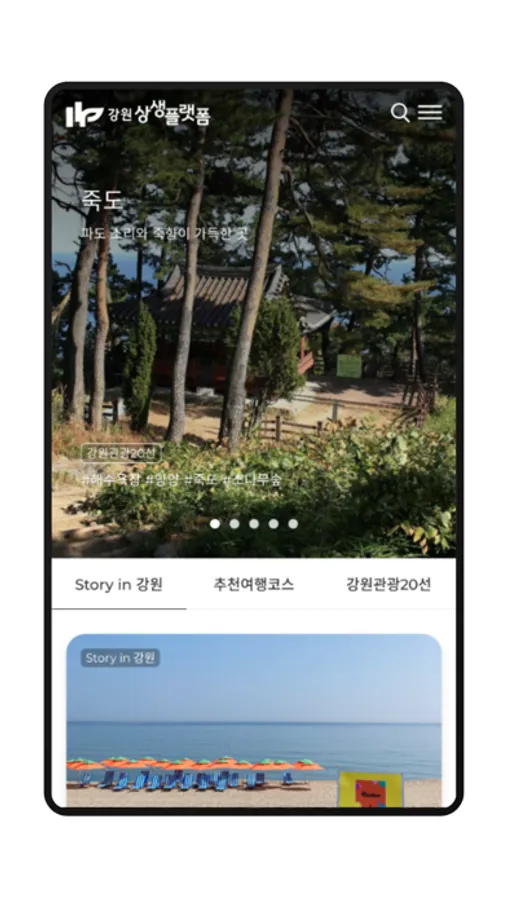 - 강원관광 20선, 추천여행코스, Story in 강원 등 다양한 주제의 컨텐츠를 경험해보세요.