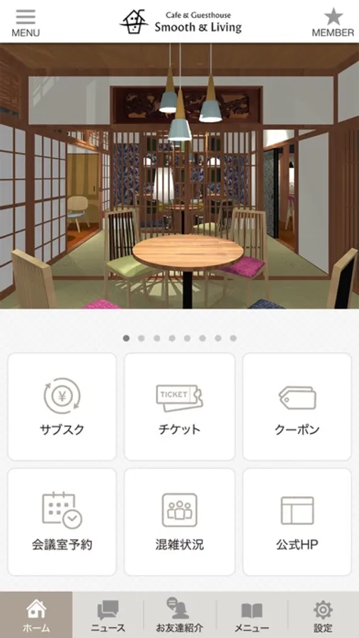 サブスク会員の皆様に必須、会議室予約やお得なスムージークーポン券の購入、各種オススメ情報などご利用が便利になるアプリです。