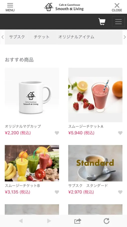 会員様へのお得な特典やスムージーチケットなどがお得にまとめて購入できる機能です。