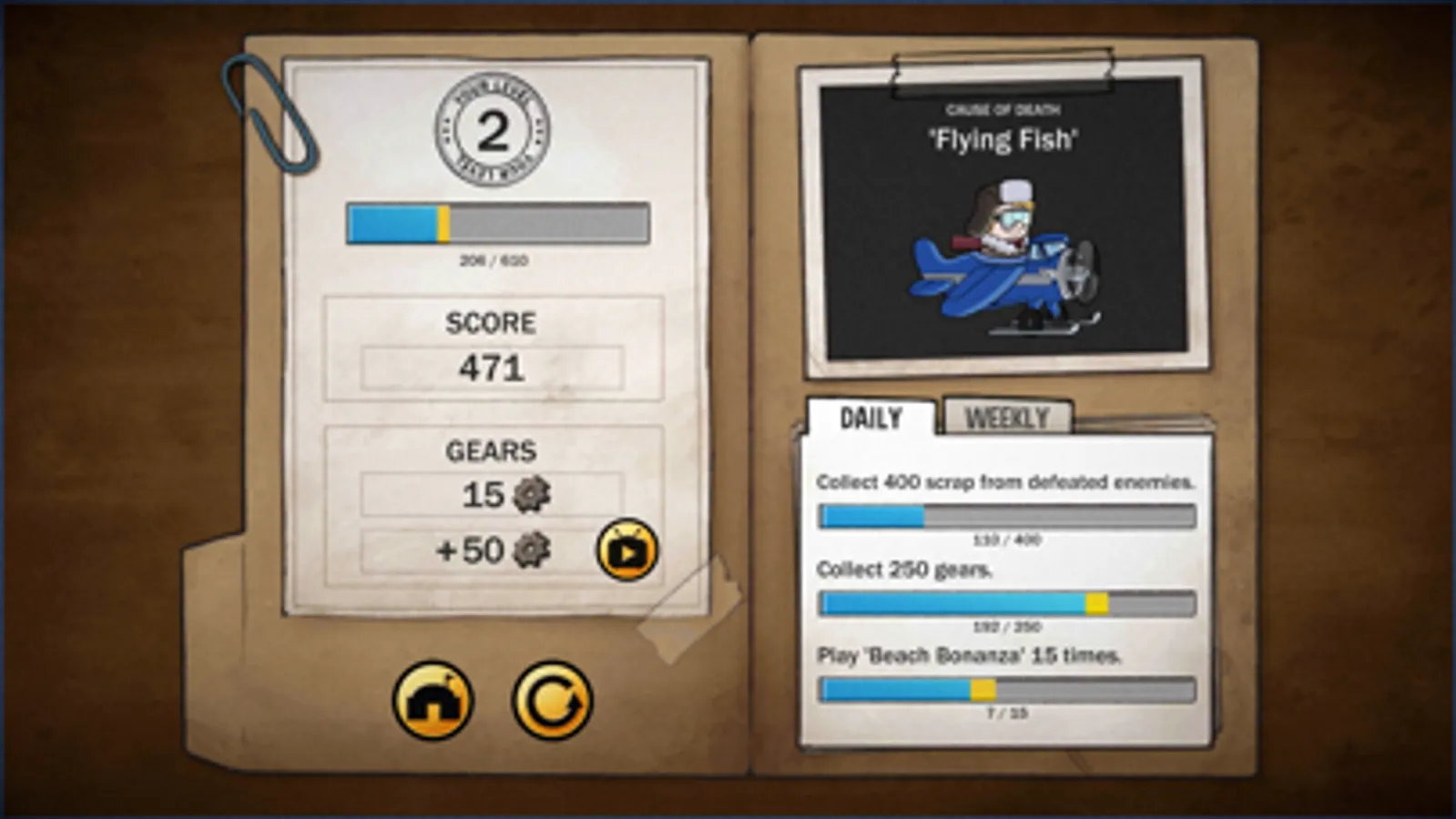 In this 1930's cartoon inspired mobile game, you'll be taking to the skies to battle new foes. Take Flight 2 is a sequel to the popular game Take Flight!, in the sequel we have added a ton of new features including joystick controls, boss fights, new pilots and planes, social features, and more! Fight off enemies, collect gears and bolts, level up, and compete in this fun endless flying mobile game.