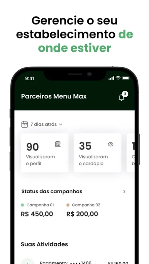 Com nosso app, você pode gerenciar todos os seus anúncios, cardápios, perfil e horário de funcionamento.