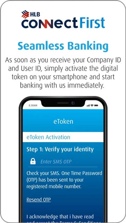 *To use the Hong Leong ConnectFirst Mobile e-Token, you must first subscribe to Hong Leong ConnectFirst and accept the Hong Leong Business Internet Banking Terms and Conditions.