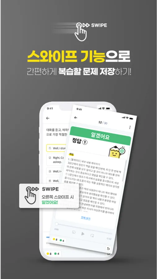 - 복습하고 싶은 문제들을 오답노트에 모아 언제든지 회독할 수 있어요