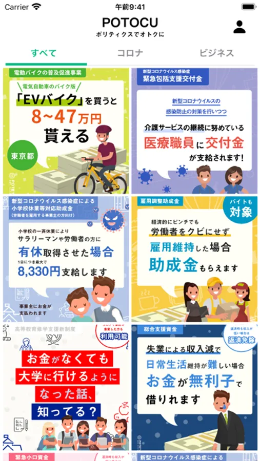 POTOCUは、補助金や助成金をはじめとしたオトク情報をプッシュ通知でお知らせするサービスです。