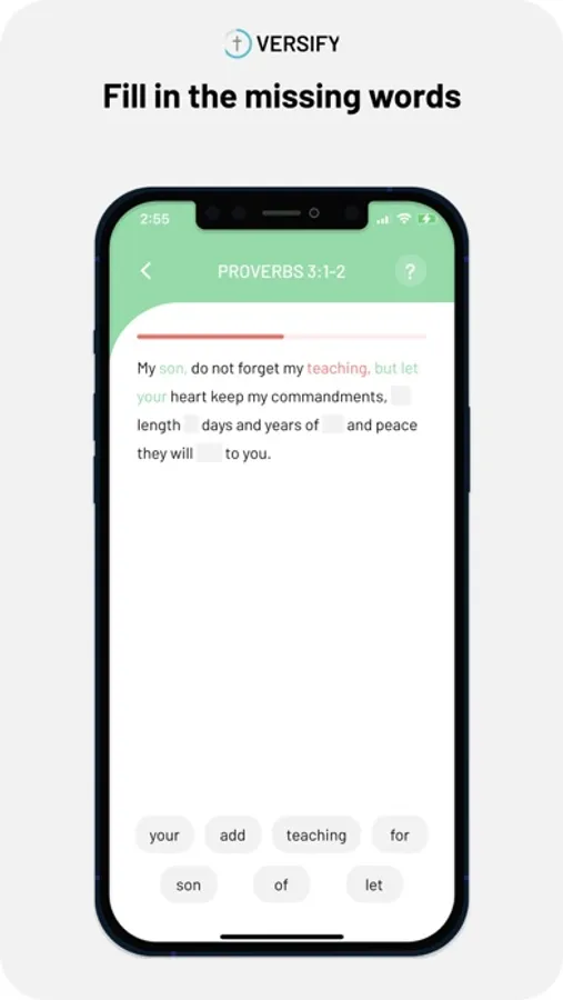 Bible verse memorization made easy. Pick verses, play games to memorize them, and track your progress.