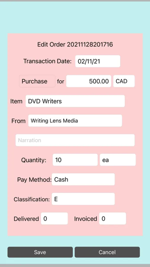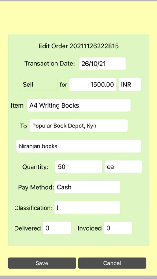 This app can be used for maintaining purchase and sale order books. Its a simple ordering and tracking system.