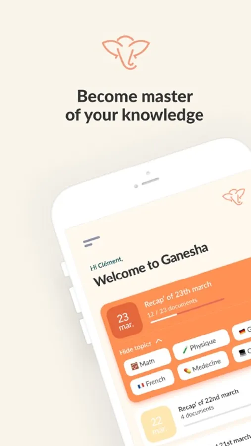 All you need to do is add your documents to the app and Ganesha will help you remember them with ease.