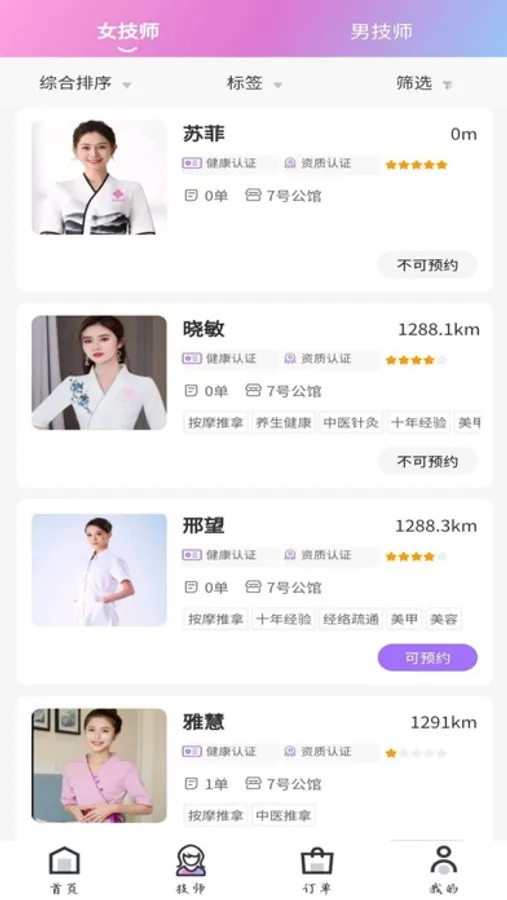 7、认证技师:所有技师通过头像认证,通过真人实拍