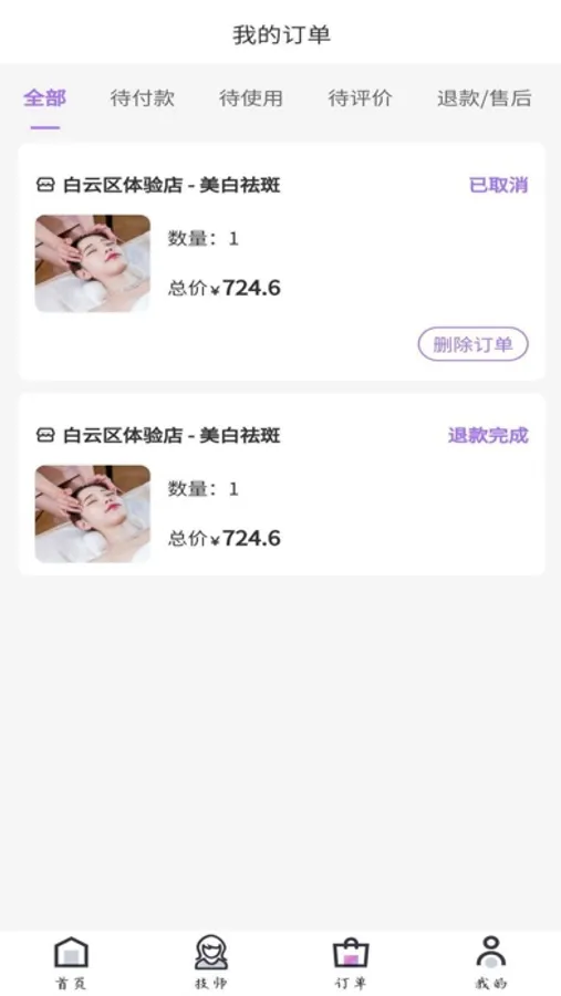 5、爽约包退:商家或技师原因爽约,无理由全额退款