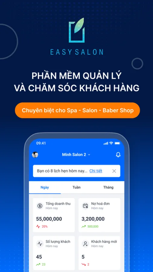 Easysalon - Giải pháp quản lý và chăm sóc khách hàng chuyên biệt dành cho ngành làm đẹp (Salon tóc, Salon Nail, Babershop, Spa, Thẩm mỹ viện, Nha Khoa....) với hơn 1.000 cửa hàng đang sử dụng.