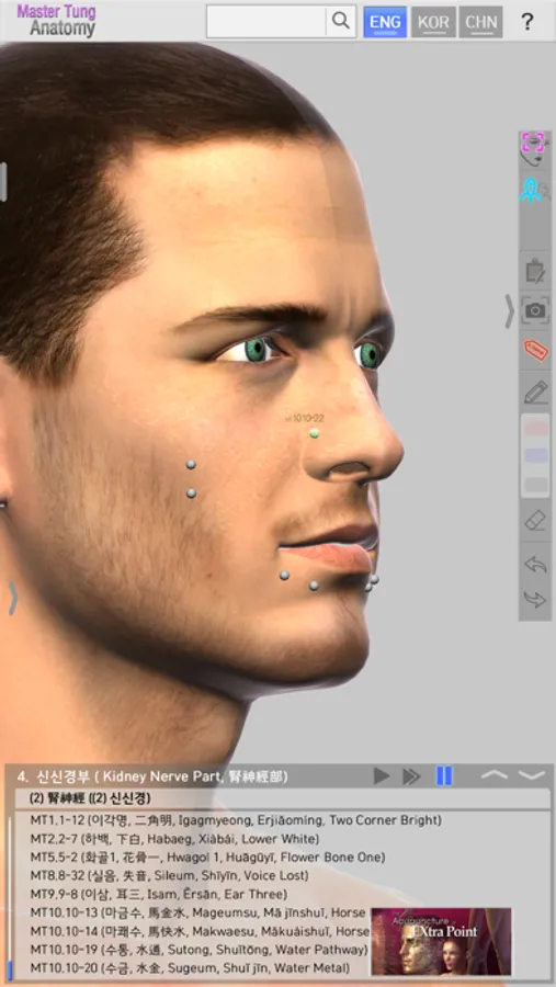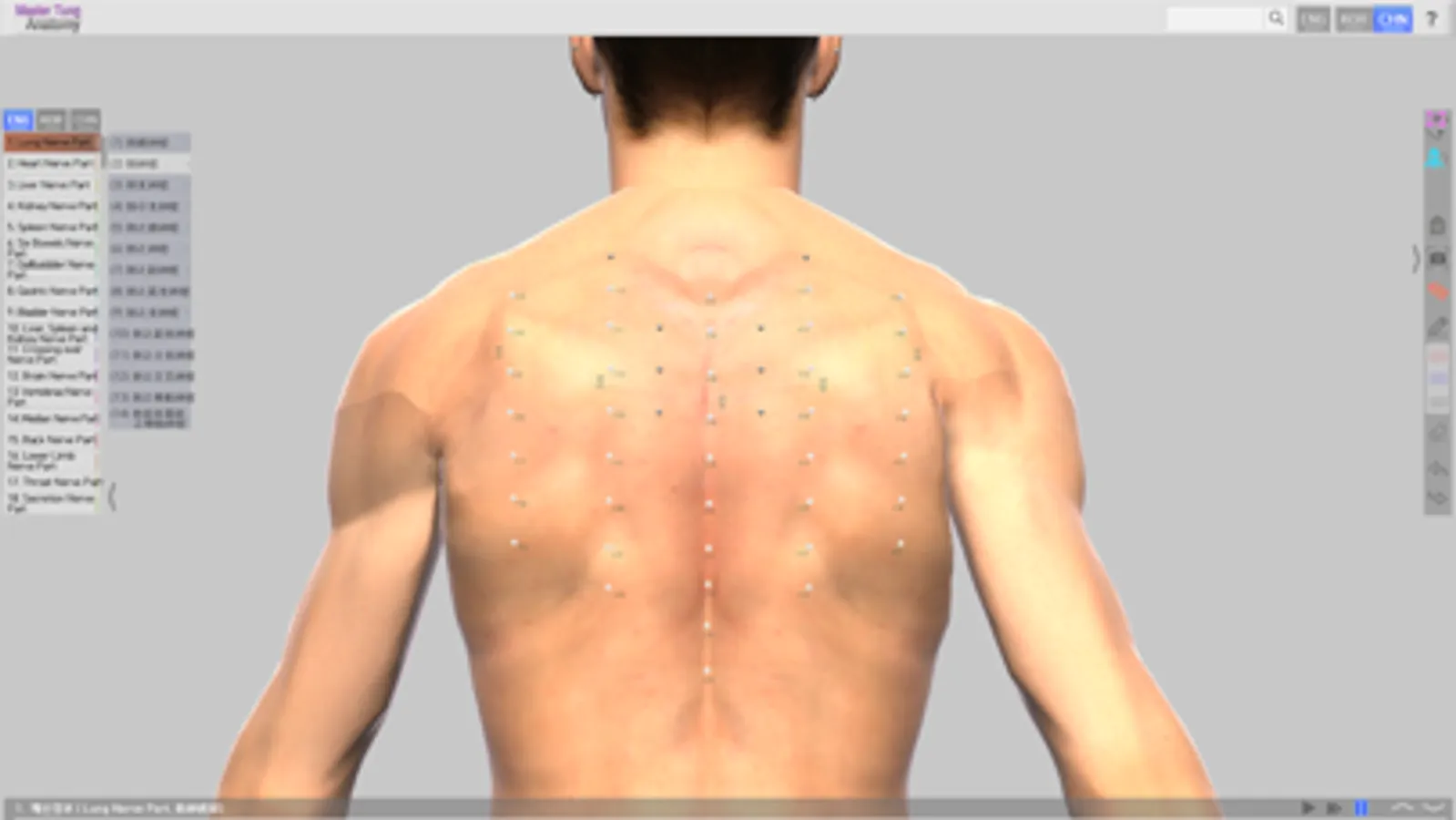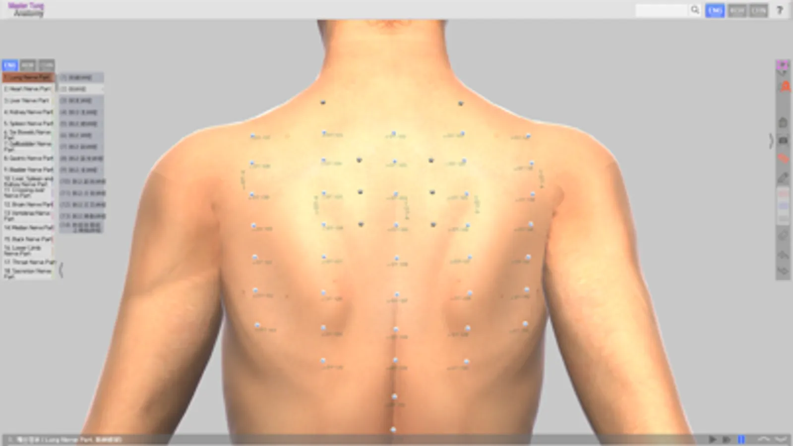 ‘Master Tung`s Acupoint Anatomy’ is allow you to easily compare and check ‘The Tung’s acupoint’ in a 3D human body model with each nerve-dominant area at the same time and separately.
