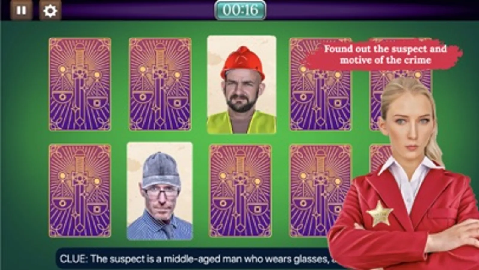 - Use a clue to analyze the suspect and match 2 pictures of the suspect.