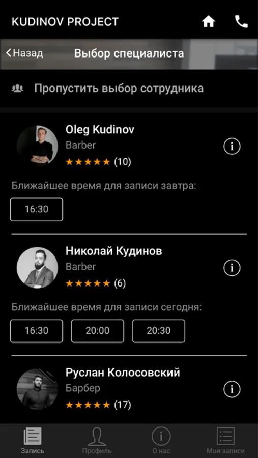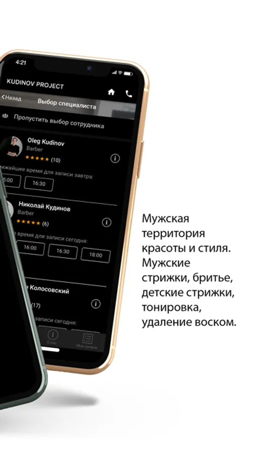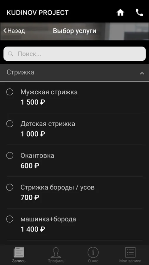 Официальное приложение сети барбершопов Kudinov Project в Пятигорске. Мужская территория красоты и стиля. Мужские стрижки, бритье, детские стрижки, тонировка, удаление воском.