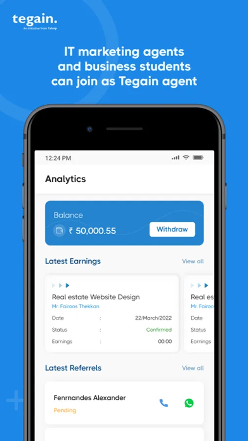 Tegain Agent App is solely designed for Marketing experts to refer IT projects and products